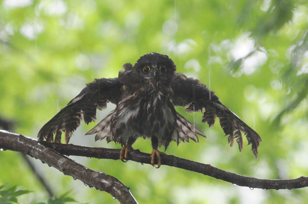 急に土砂降りになってアオバズクがこんなになってました〜😆