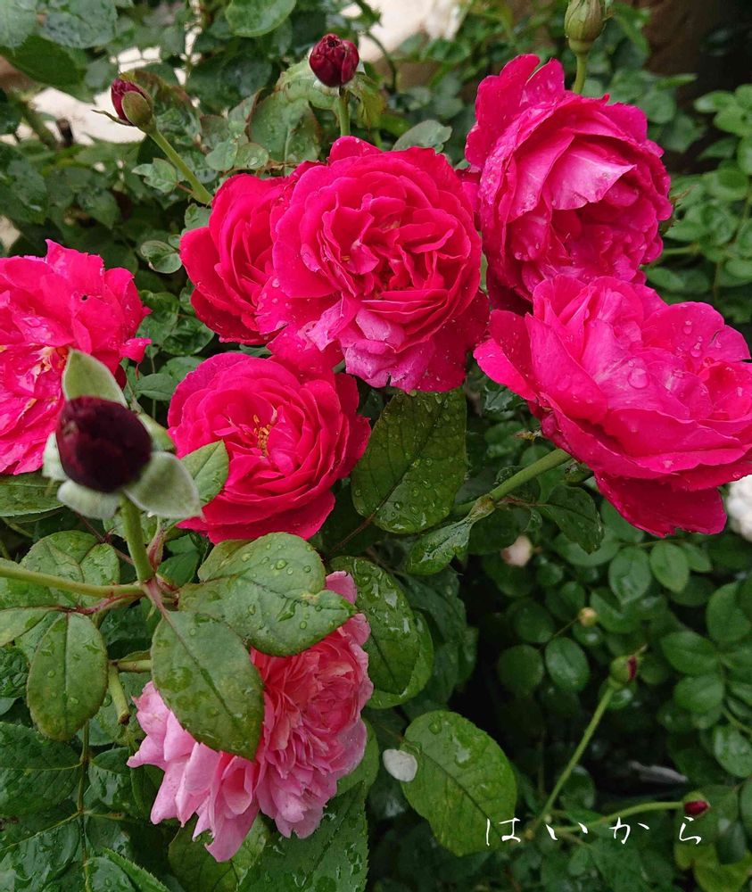 雨☔でみんな下向いちゃってるのに、はいから🌹は元気に上向いてしっかり咲いてくれました~(* ´ ▽ ` *)💕