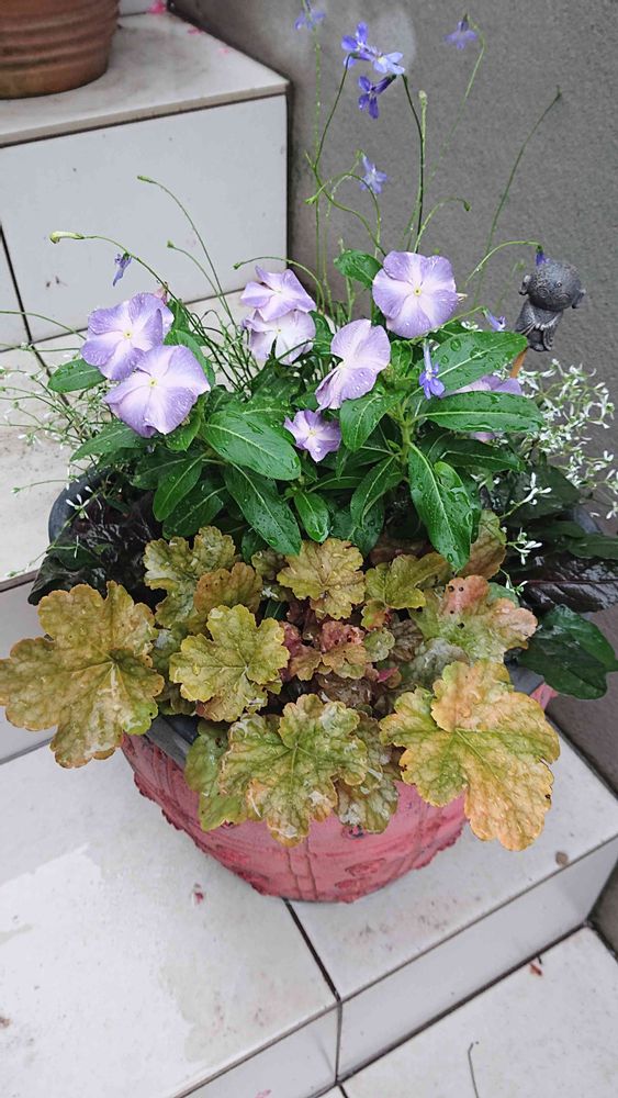 ニチニチソウ爽夏メインで暑い夏に涼しさを与えてくれる寄せ植えを作りたくて。