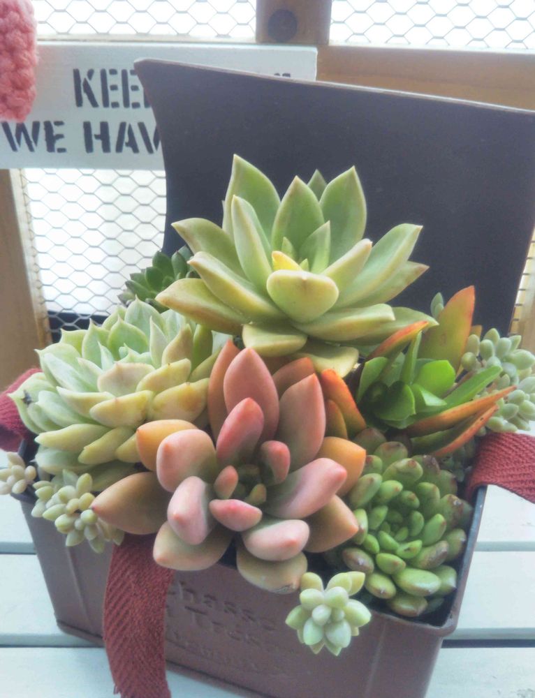 この季節、メインの多肉の葉が枯れ落ちたりジュレたり、またすき間を埋めていたセダムが消えたりして、寄せ植えをすき間なく保つのが難しい…💦