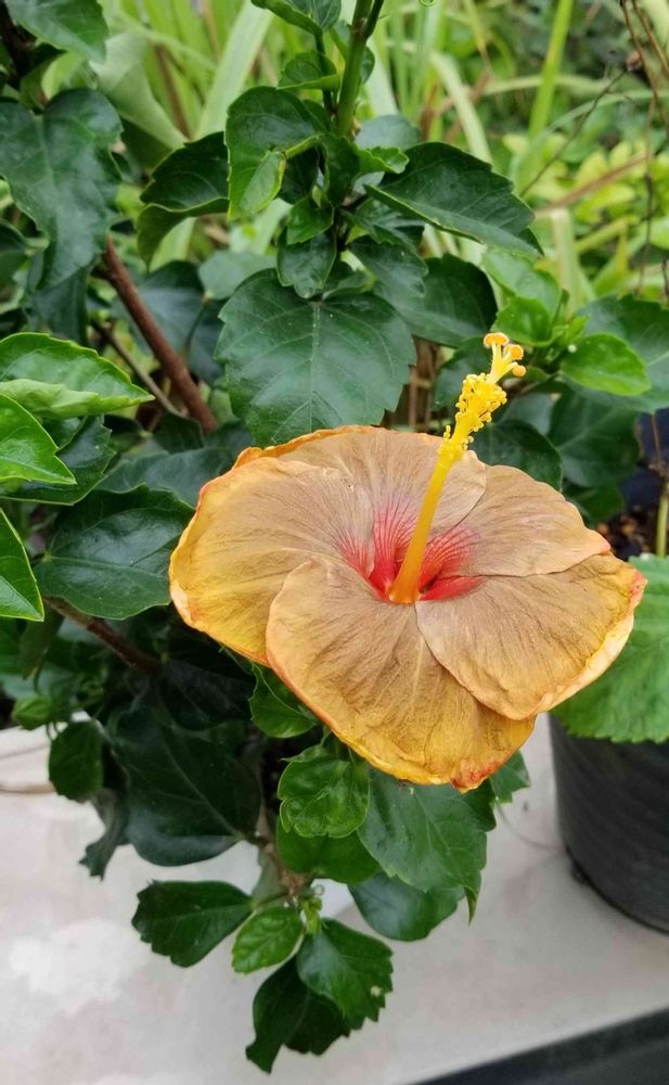うわー😳不思議なお色だね🧡ハイビスカスって、派手な原色のイメージだったけど、ブルーデニムとかこの子とか魅力的な子が続々と😍