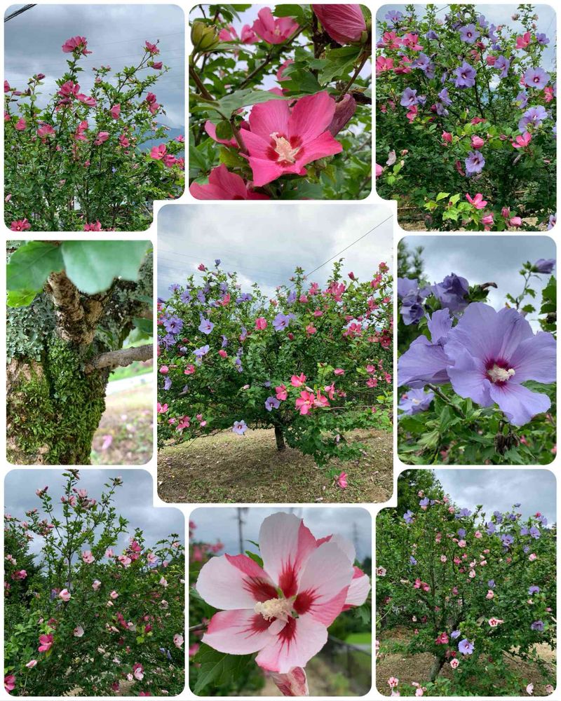 しかし、花色毎に枝を辿ると確かにブロック毎に色がかたまっています。接木ですね! でも全体を見たら美しいです。ムクゲの接木を初めて見ました。