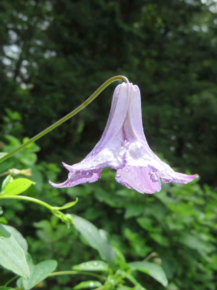 花は薄紫色で、半釣鐘型の花が下向きに咲きます。