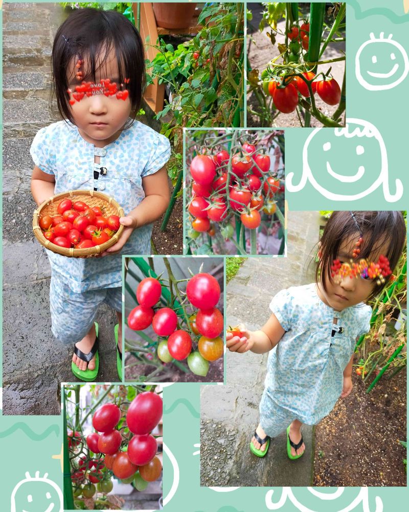 あら〜、小さなおててで沢山のトマト🍅の収穫👀