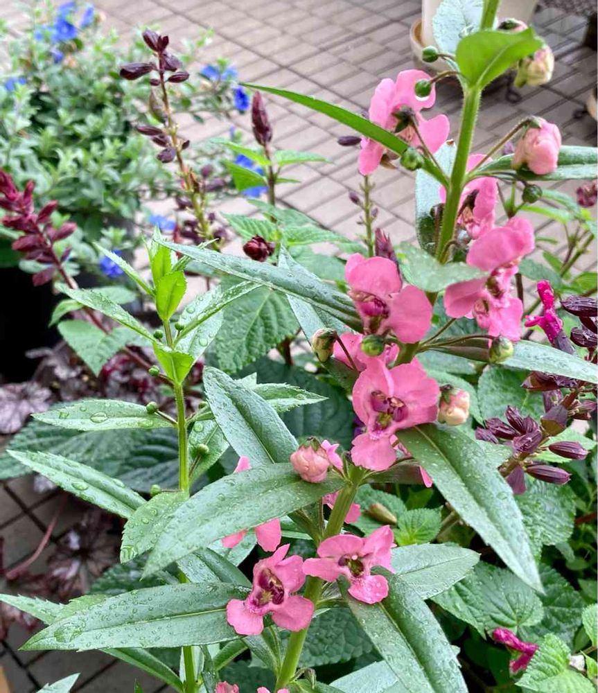 雨が続いていて、ベランダになかなか出れませんが、PWアンゲロニア・エンジェルフェイス・ピンクが元気に咲いています!