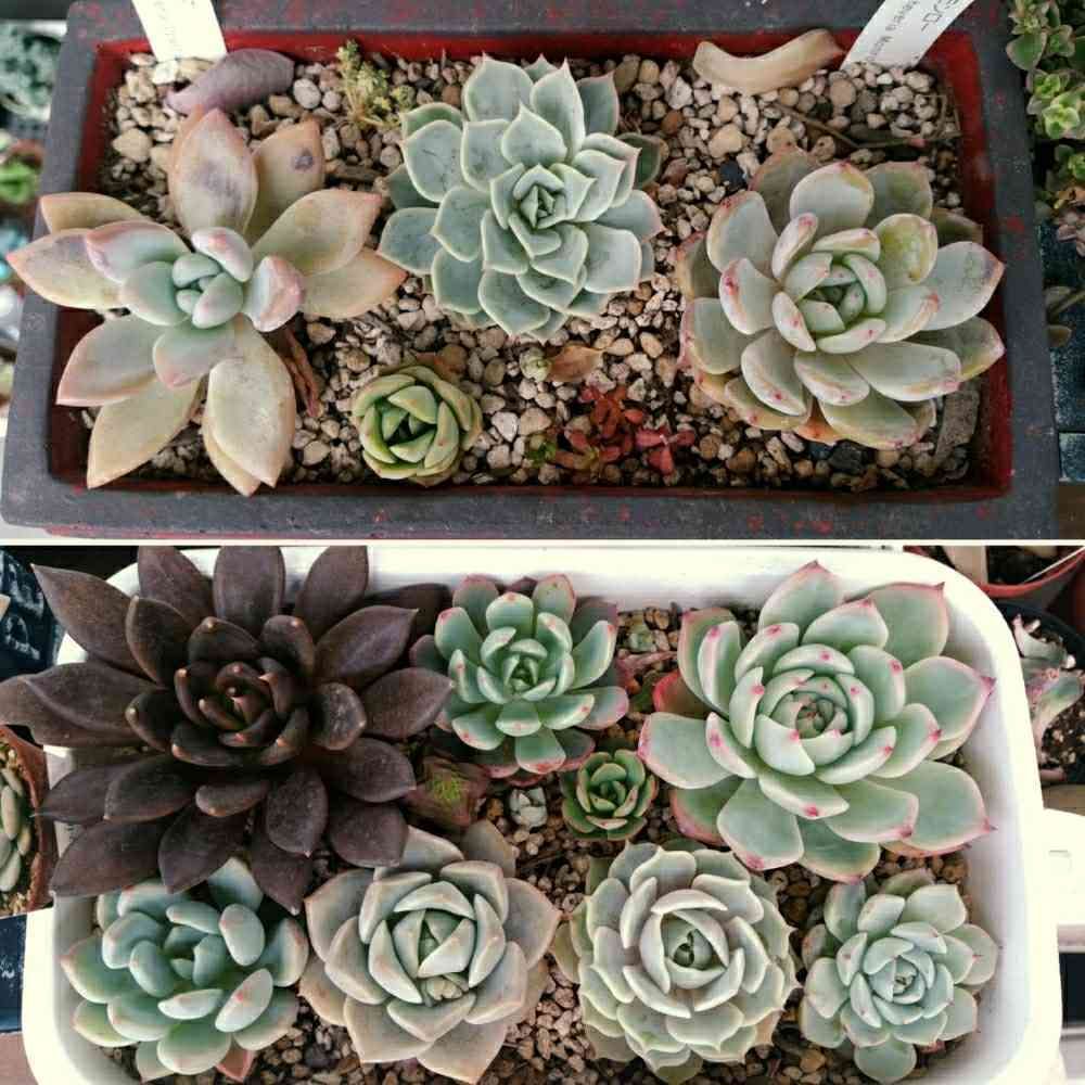 今日は台風、強風対策でエケベリアちゃん達を寄せたプランター🎵 どの子もモリモリになって…隙間が😭 これはまたどの子かお引っ越し😂💦💦