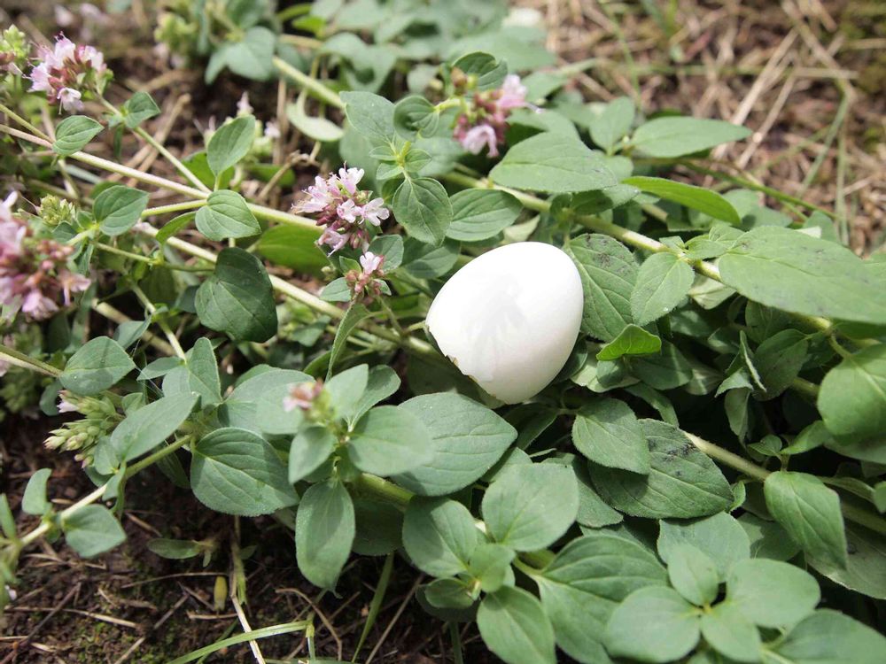 伸びすぎたオレガノを切っていたら割れた卵発見🐣
