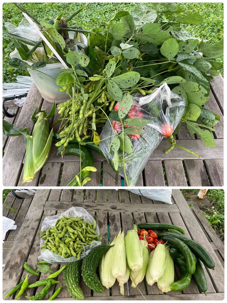枝豆の実を外し、トウモロコシの皮を剥いで、水洗いしてから持ち帰ってます。