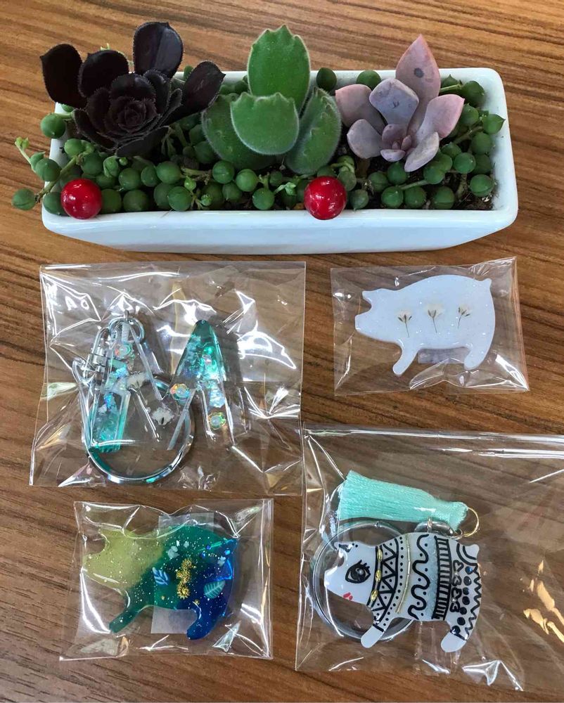 今日から今月いっぱい地元のお菓子屋にて、長女の先輩のお母さんの『多肉の寄せ植え』と、長女の『手作りレジンの作品』が展示・販売されることになり、早速買ってきました🎶🍀