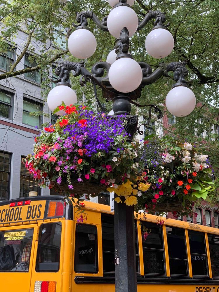 今朝は、カナダ(バンクーバー)の、街灯に飾られた花々♥️💜💛私のGS投稿を知った、知り合いからの一枚です。小さくて、何の花だか分かりませんが、お洒落💞