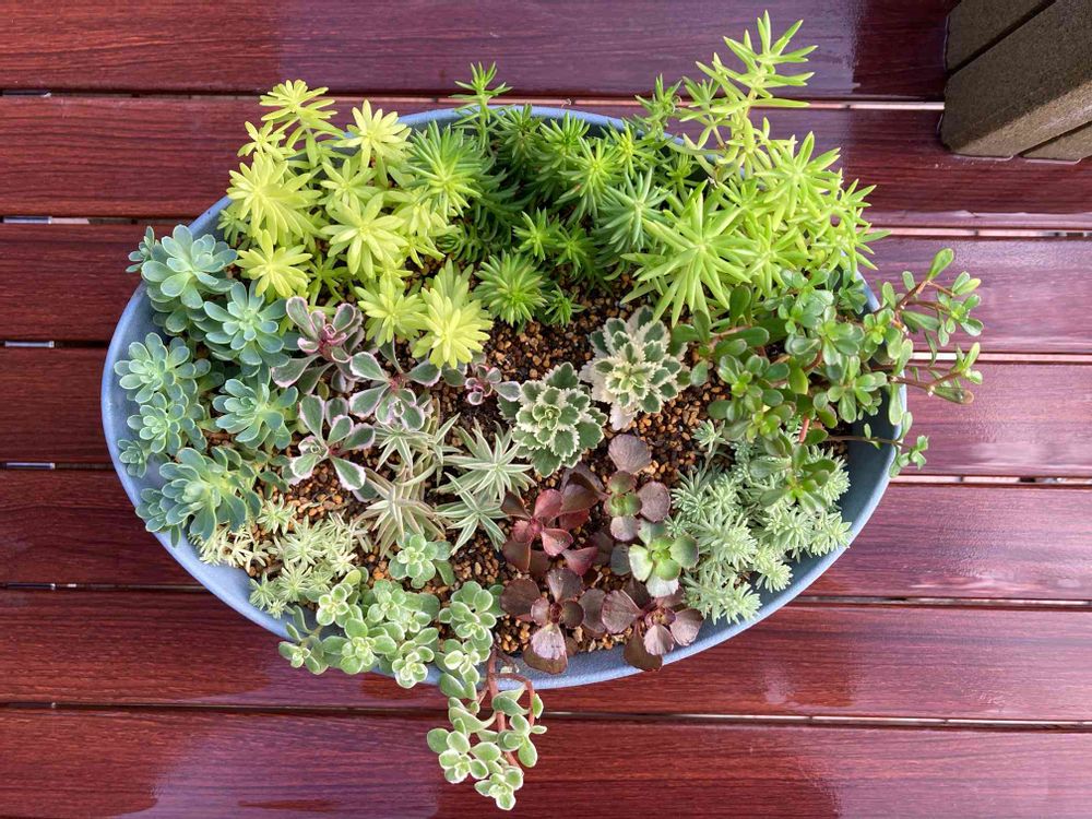 通気性良く作り直した、バスケットセダム寄せの記録用、真上からです。
