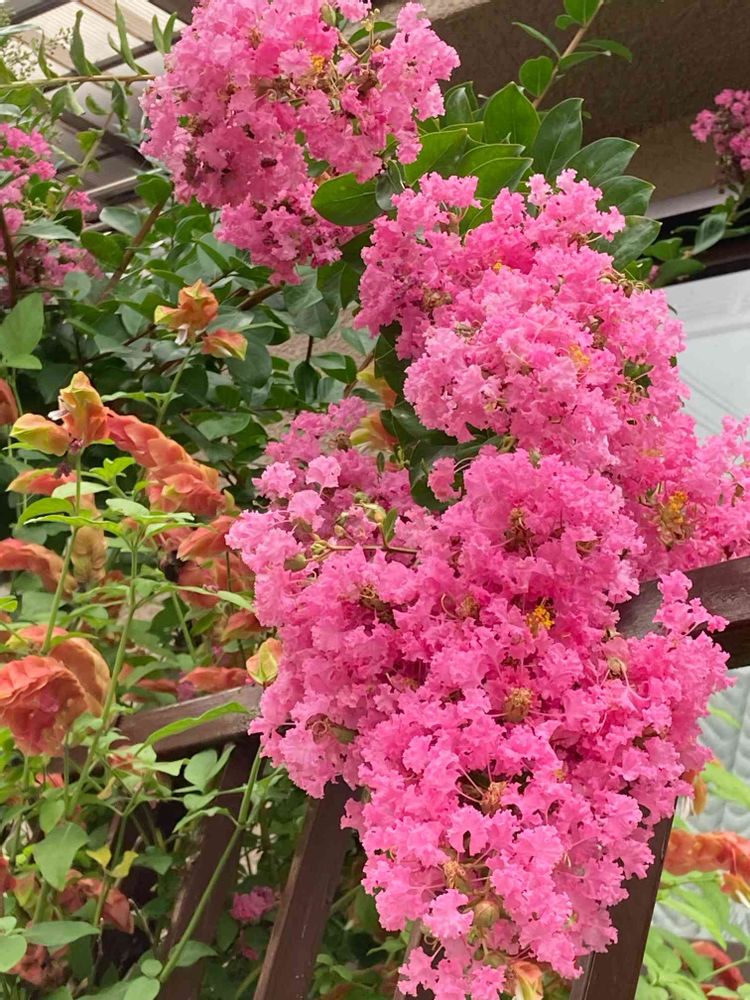 ご近所さんのピンクのサルスベリです。もふもふです。