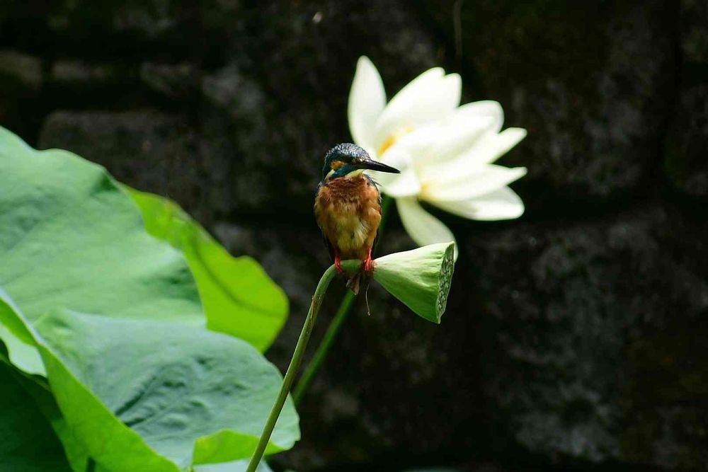 蓮のシャワーヘッドに乗ったカワセミさん🐦🌼