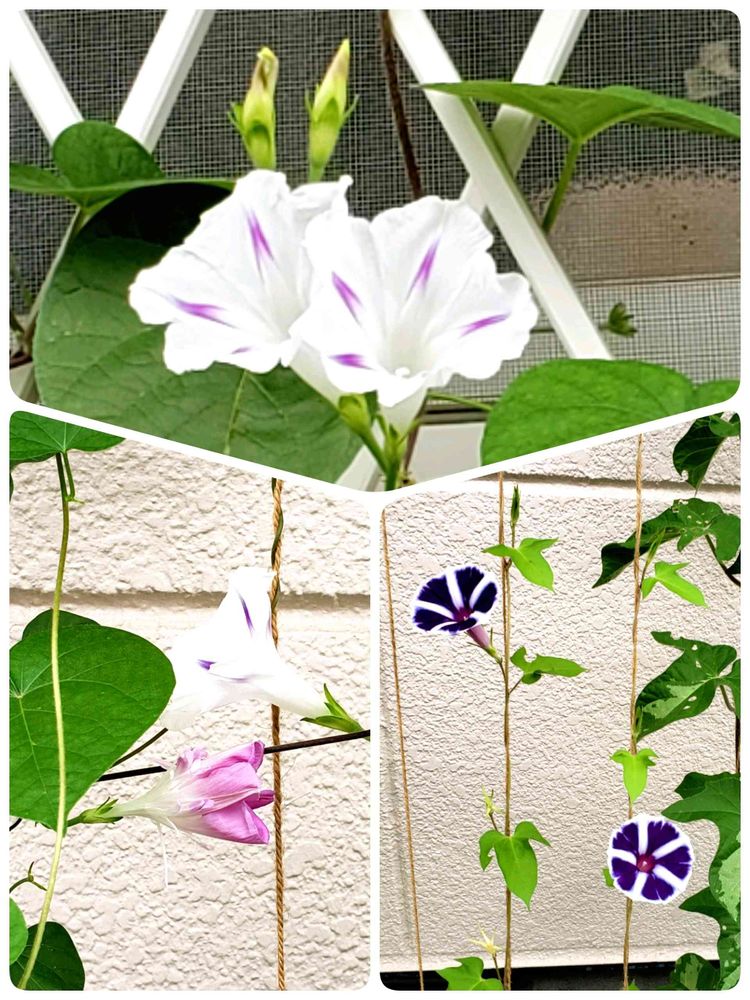 今朝は、スプリットペタル、ミルキーウェイに続いて、曜白の朝顔も咲きました🎵😃✨