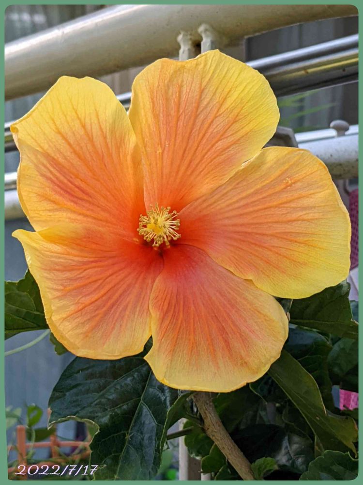バルコニー/ベランダ,ハイビスカス♡,橙色のお花の投稿画像