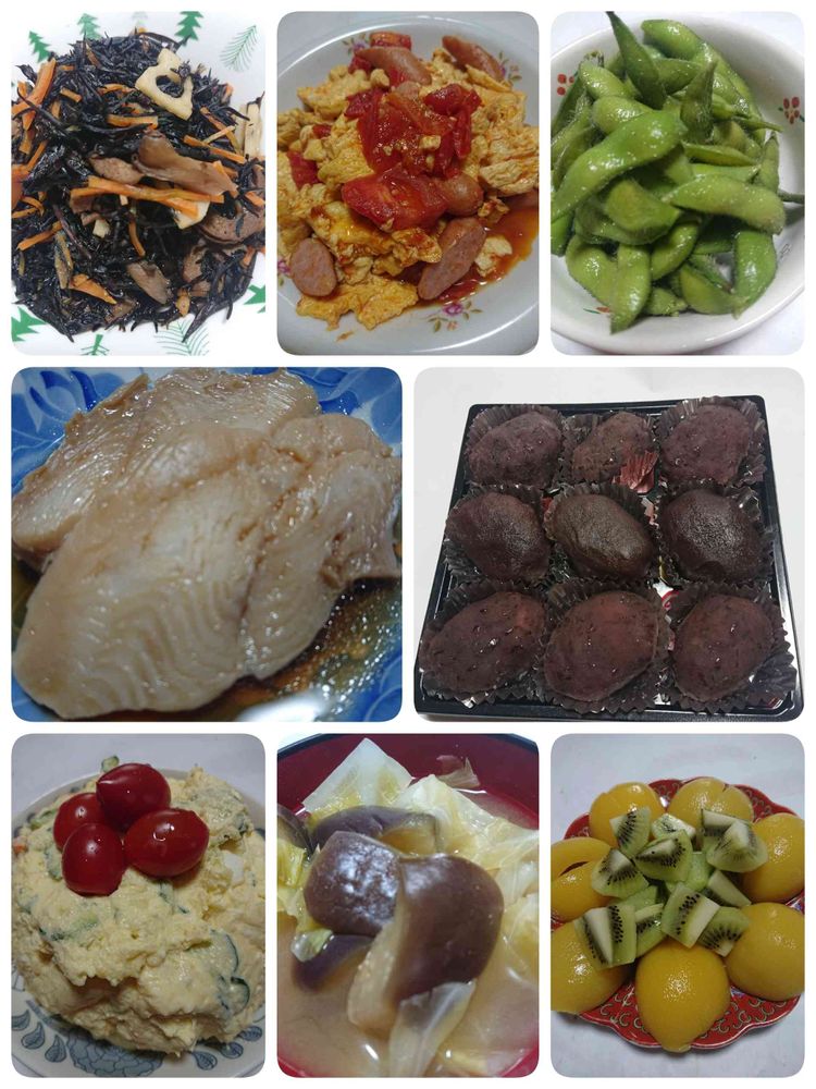 今夜はおはぎよばれるわね🎵大好きよ❤️トマトタマゴもね⤴️ひじきや