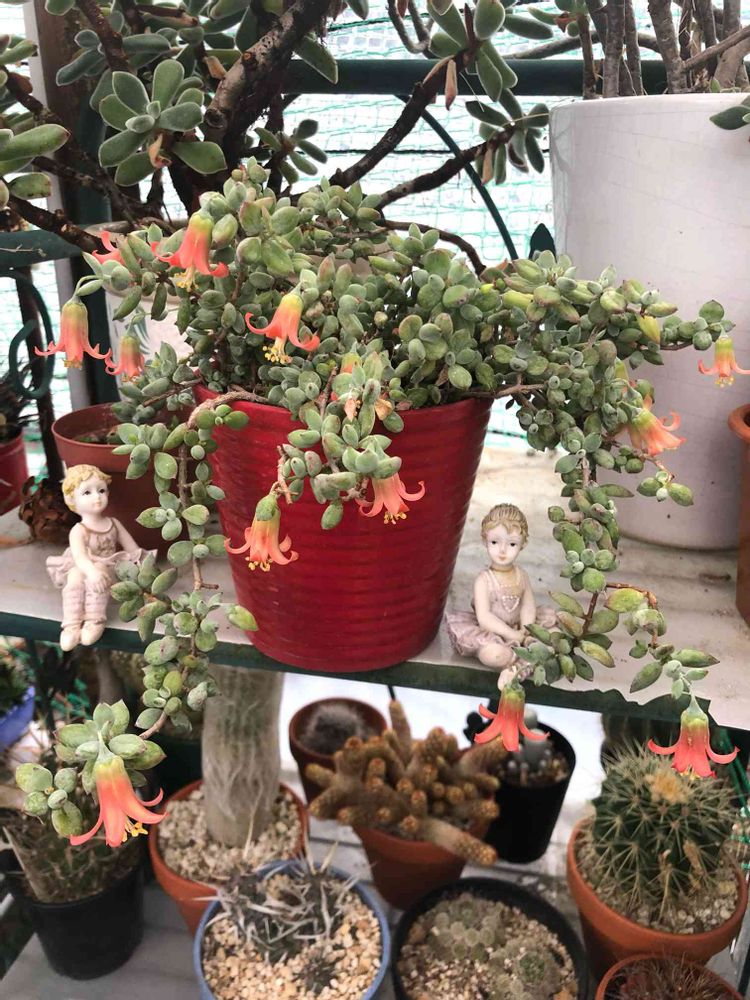 枝ぶりも放置状態なので垂れ下がっています😅周りの女の子達はバレエ🩰少女なんですよ。処分される予定だったのを私が頂いてきました。多肉の棚のあちらこちらに
