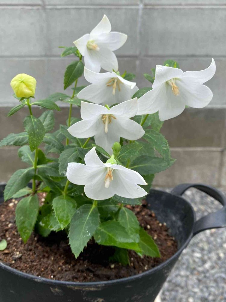 白い桔梗初めて見ました。可愛いですね💕切花にもなるしいいですね😊