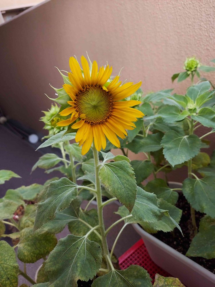 ふぅりんさんのバルコニー/ベランダ,ダイソー出身,ミニひまわり♡の投稿画像