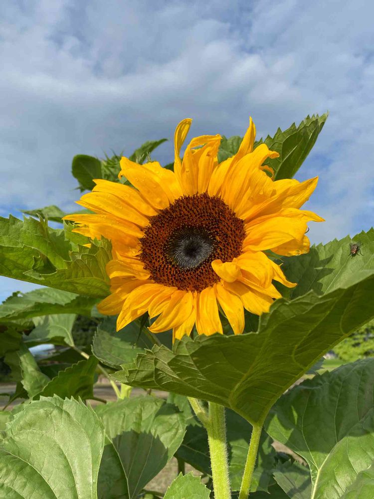 散歩道で大きなひまわり🌻がお日様に向かって咲いてました🎶