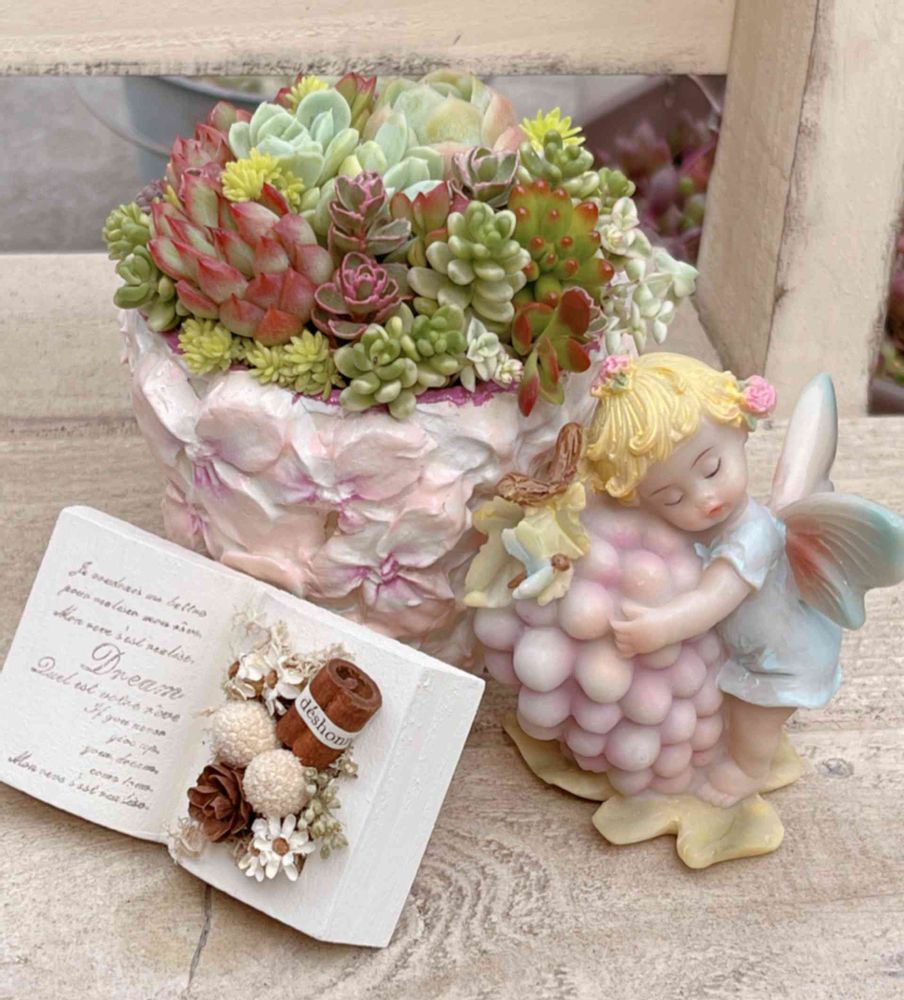 なんて可愛いエンジェルちゃんに色とりどりの寄せ植え✨