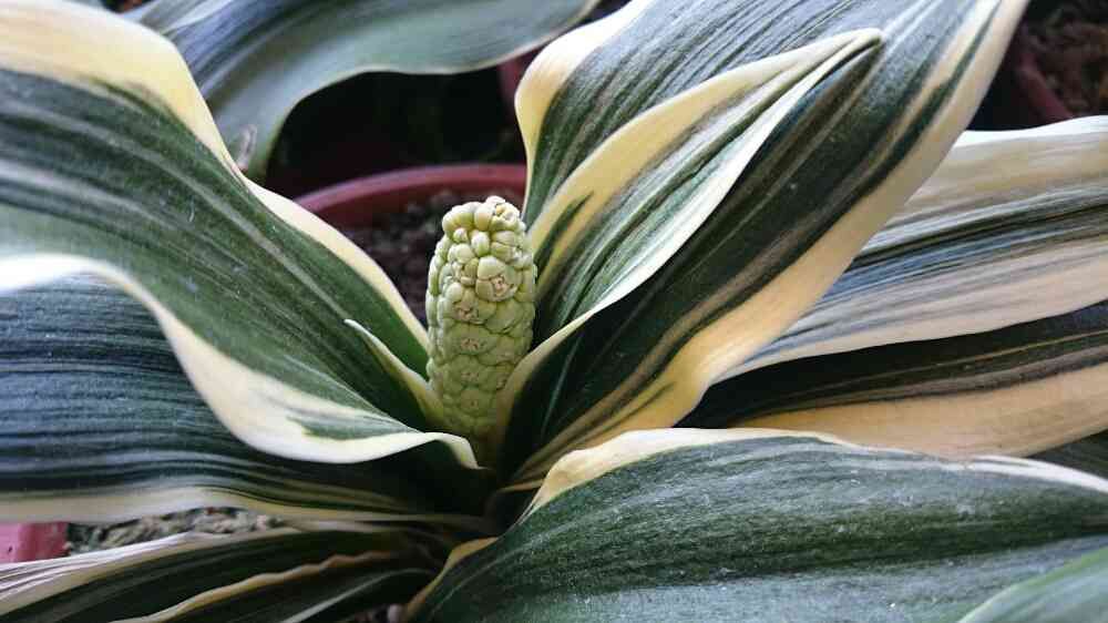 おもとの実親に花芽がきました🍀品種の違う実親同士をかけあわせオリジナルな「羅紗系おもと」を作り出す為に日々努力しています🍀🍀\(^o^)/~🍀🍀