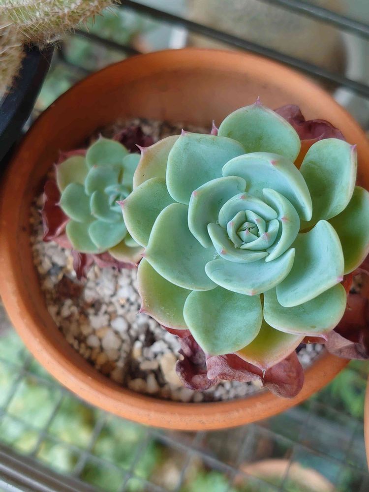 お花が少ないこの時期にお花のような可愛らしい多肉さん(⁎˃ᴗ˂⁎)💚下の葉っぱは枯れ枯れですが、何とか頑張ってますヾ(*´∀`*)ノ🌱✨