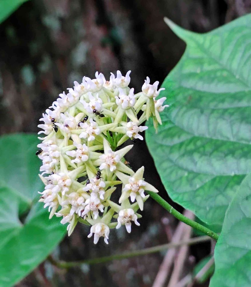 有毒植物なのですが、秋に藤袴、ヒヨドリ草、高野箒等の花に翔んで来る蝶🦋のアサギマダラはこの葉を食草としています。 この毒を体内に取り込んで外敵を防いでいるのでしょうね!。