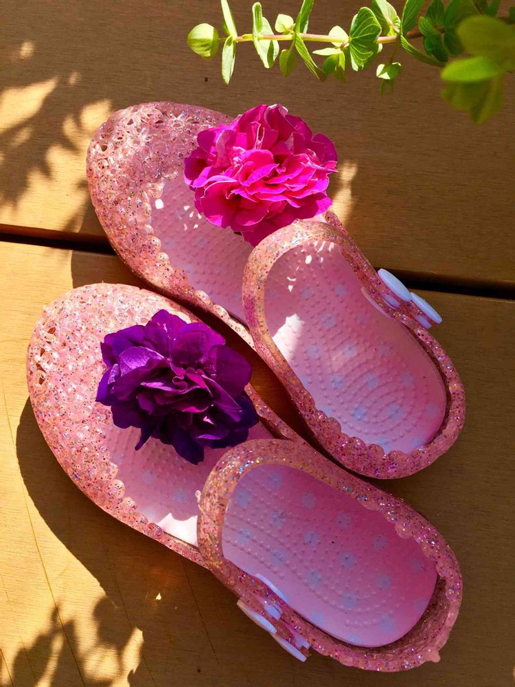 サフィニアの花柄摘みをしていたら、近くに娘ちゃんのお靴が💜💕