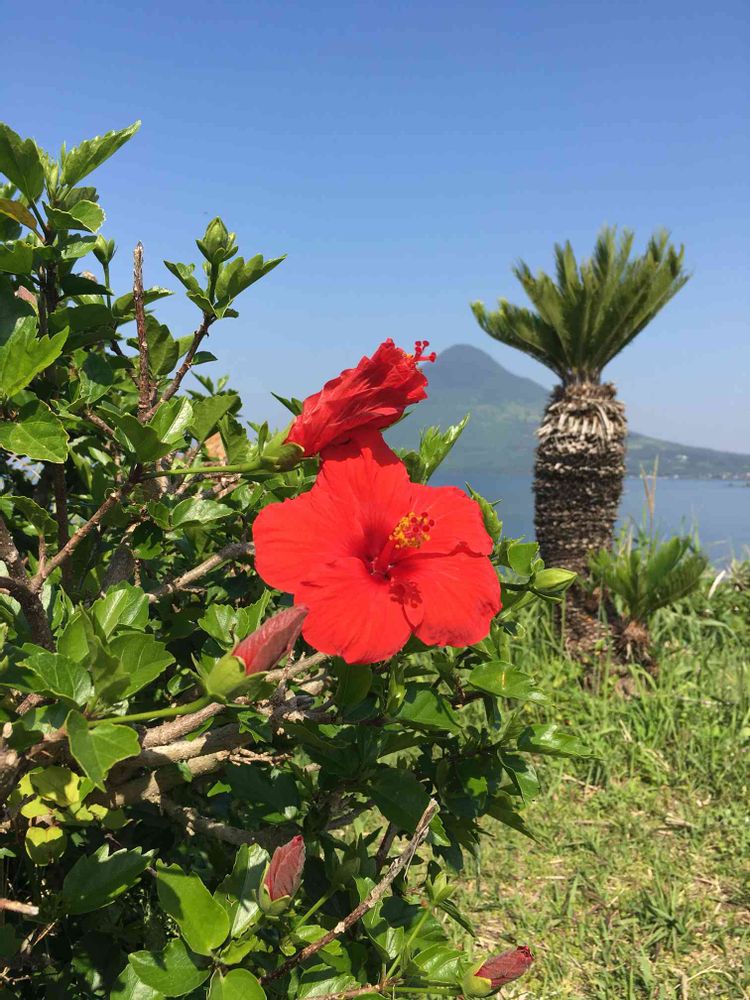 鹿児島はもうハイビスカスが咲いていました。鮮やかな赤色が眩しいです。
