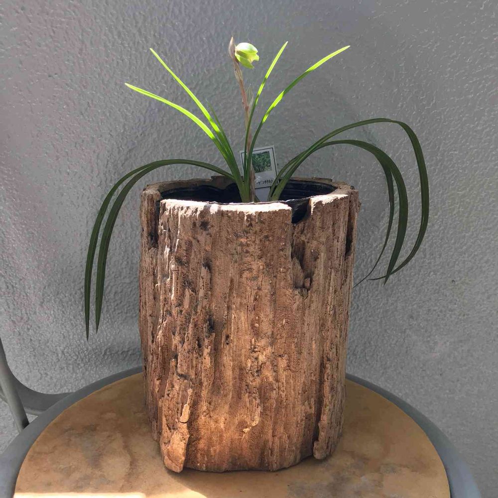直径20センチほどの木をくり抜いた鉢です。表面がデコボコなので、何かを着生させようかと思案中です🤔