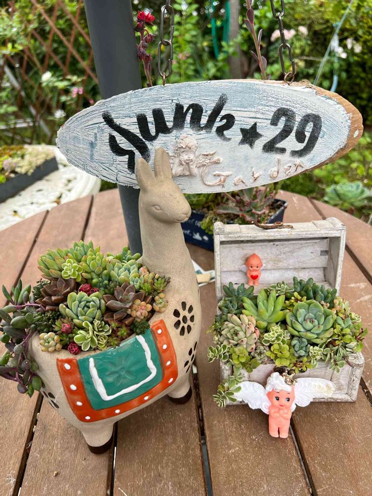 素敵な寄せ植えですね〜ほーちゃんのエンジェルボードも映えてます💕💕