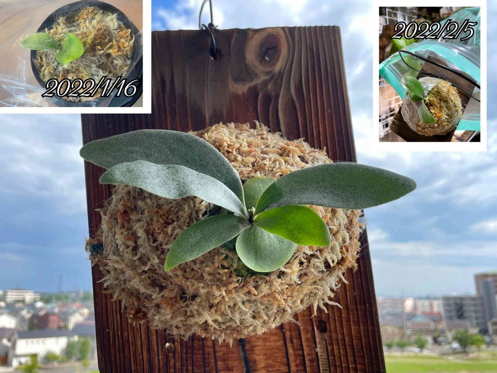 貯水葉が2枚展開しだしたので板替え&コケ増し〜👐