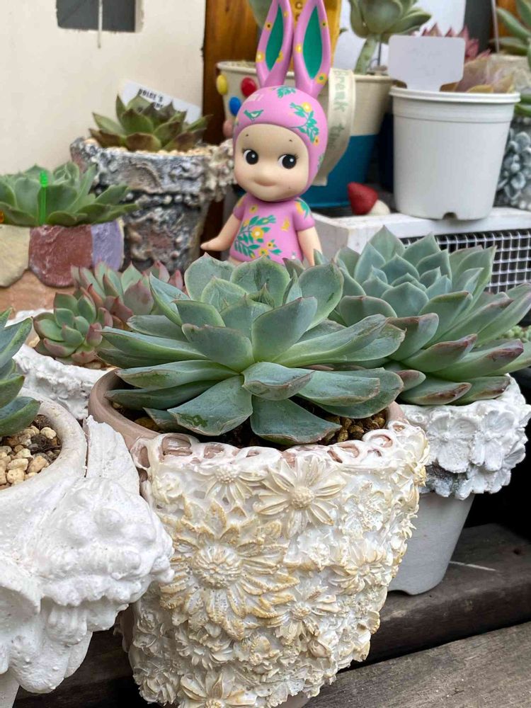 お気に入りの鉢に入れた、夏顔の可愛い多肉さん達とANNA SUI×ソニエンくんにズッキュ〜ン💘💘💘💘💘