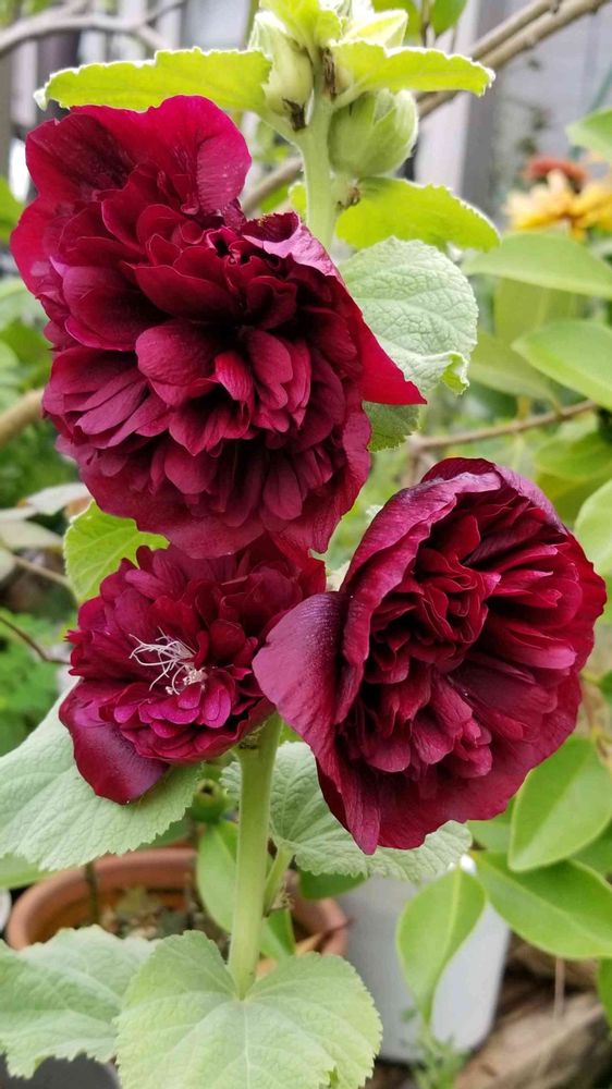 大人カラーの素敵な八重咲きのタチアオイですね❣️