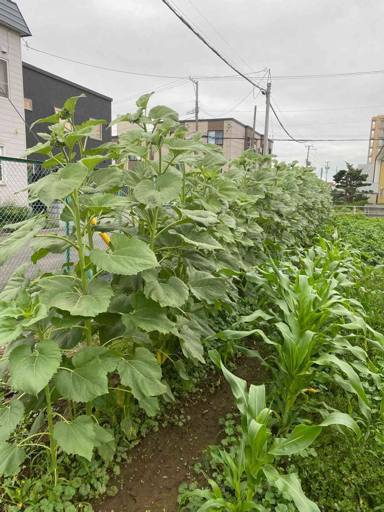 畑の栄養をヒマワリが吸収して矮性のも背が高くなったようです(笑)