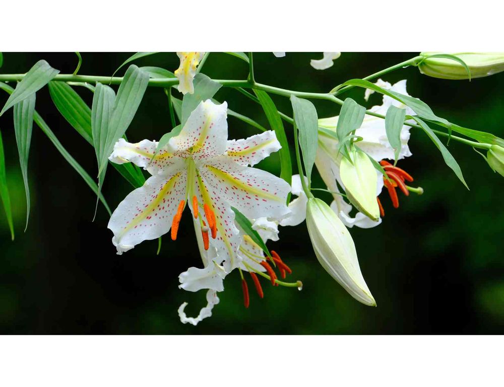 全部が真っ白ではなく、花粉の色とマッチする黄色とそばかすのような模様が派手ではありながら日本的な、日本画のような落ち着きと深みを感じさせますね。
