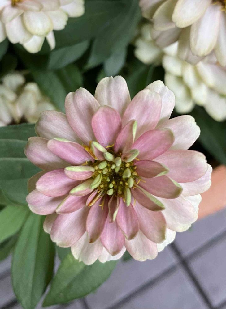 素敵な色のジニアですね。こんなニュアンスカラーの花もあるんですね❗️