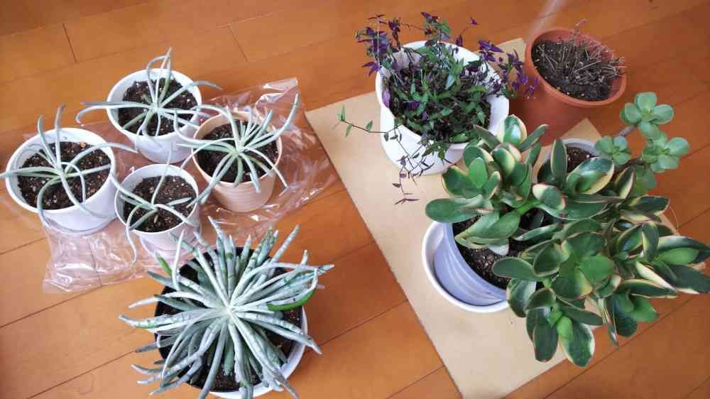 花月、モロコエンシス、ブライダルベール(超強剪定)、スケイポサス…植え替え&株分けしました😄