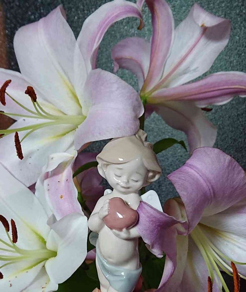 美しいゆりのお花とリヤドロエンジェルちゃん今日もめっちゃⓒⓤⓣⓔ♡