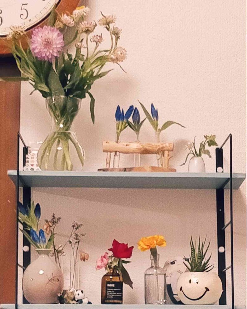 リビングの飾り棚を花いっぱいにデコレーション✨