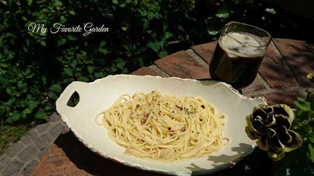 青森のお友達が送ってくれたニンニクと自家製乾燥バジルで🎵
