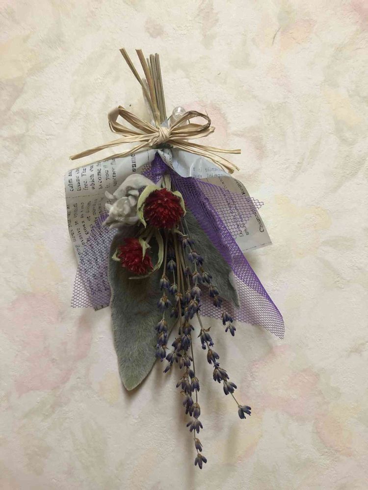 ドライにして、北海道旅行のお土産のラベンダー、千日紅と合わせて可愛いスワッグを作ってくれました😍