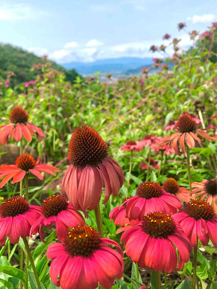 赤に少し優しさを混ぜたような、深い色合いのエキナセアさんですね🌱たくさん咲いてますね💮