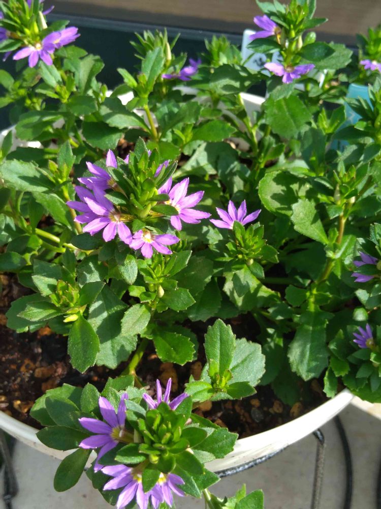 見切り品再生のスカエボラ、もりもり育って、花🌼咲かせました🥰