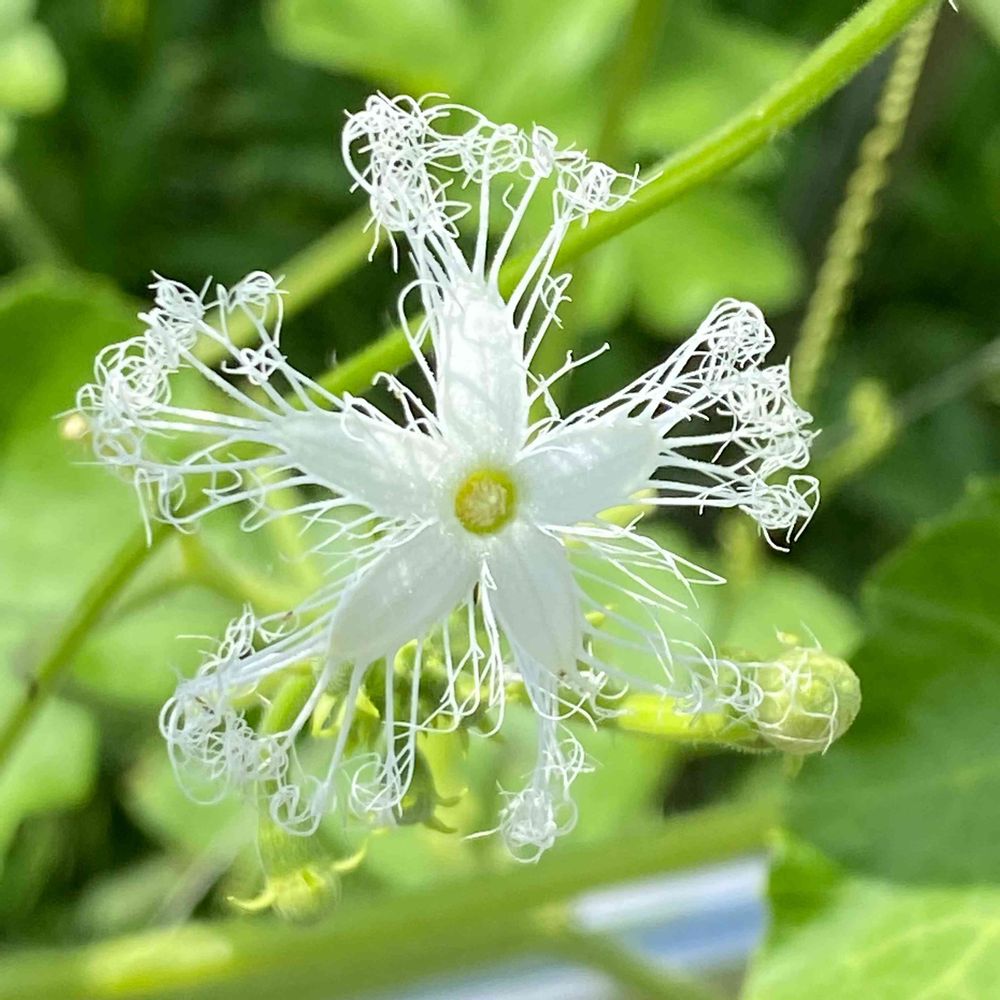 カラスウリも何度か深夜に撮りましたがヘビウリは日中に咲くそうです😊