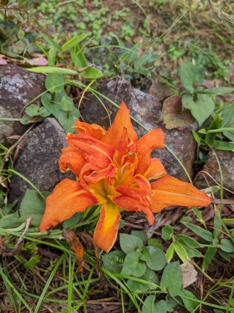 ヤブカンゾウ。強風にて、倒れる!🙀⚡☔⚡☔⚡😭