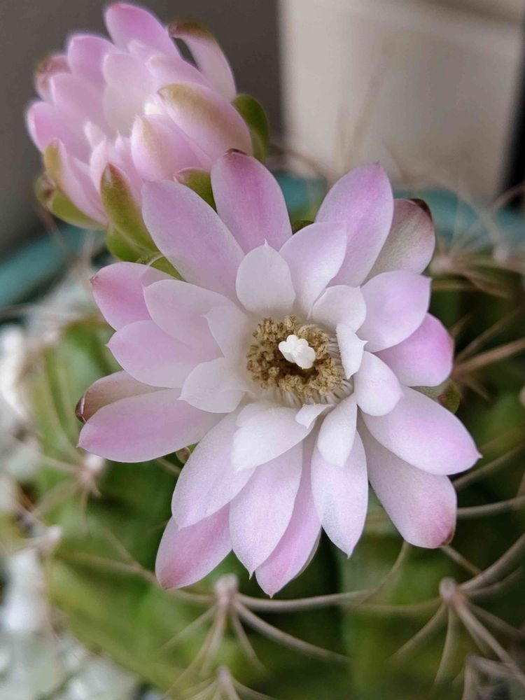 初めまして。サボテンのお花には見えないような八重咲きの可憐で、淡いピンク色のグラディエーションがとても素敵ですね。どんなサボテン科も気になりましたが。素敵なお花を有難う御座います。
