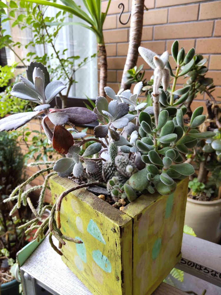 木箱に多肉寄せ植え