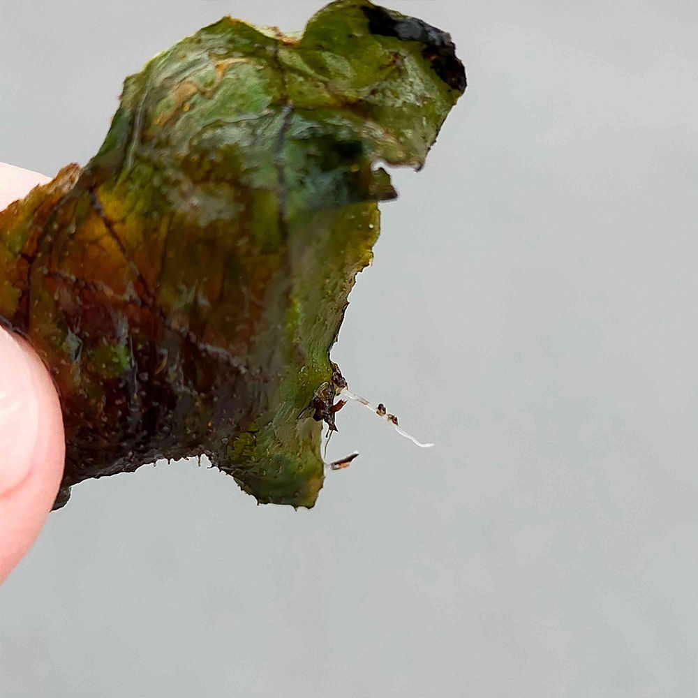葉挿しが枯れてきたので失敗だと思い引っこ抜いたらわずかに根が出ていた。